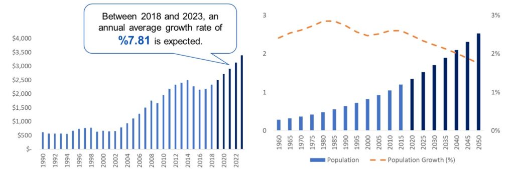 The demographic and economic trends in Africa offer very profitable opportunities for Turkish construction firms. The population of the African continent is increasing dramatically. Combined with the current underdevelopment, there is a huge need for infrastructure and housing for the masses. The current population of the continent is 1.35 billion and it is expected to reach 2.5 billion by 2050. Secondly, the economy is growing and many people move from the low-income level to the middle-income level. As a consequence of economic growth, there will be more demand for modern residential areas and office buildings. According to the latest estimates of the African Development Bank, Africa’s GDP could increase to over US$15 trillion in 2060, from US$2.6 trillion in 2019.