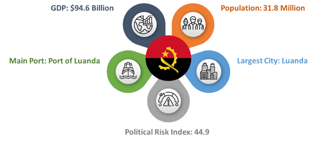 Located in South-Central Africa, Angola is bordered by Namibia, the Democratic Republic of Congo, and Zambia. It has a population of 30 million people and its economic output is $124 Billion. Angola has vast mineral and petroleum reserves, which increases the growth rate of its economy. Angola is a member of the United Nations, OPEC, African Union, the Community of Portuguese Language Countries, and the Southern African Development Community.
