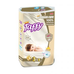 - TAFFY est notre marque qui a été créée pour offrir un confort et une sécheresse Premium. La couche est spécialement conçue pour offrir une protection maximale et un ajustement pour les bébés, avec des caractéristiques oreilles élastiques, une lotion, la vitamine E, une capacité d’absorption et de rétention élevée, où le bébé peut rester au sec pendant 12 heures .